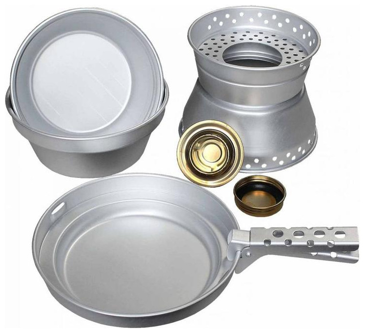 Λατρεύετε το camping και την πεζοπορία αλλά δεν μπορείτε να μείνετε για μεγάλο διάστημα χωρίς να φάτε ένα καλομαγειρεμένο φαγητό; Το Σετ Μαγειρέματος της Mil-Tec, έχει σχεδιαστεί ακριβώς για εσάς! Αποτελείται από: ένα τηγάνι, 2 κατσαρόλες διαφορετικών μεγεθών, μια καθολική λαβή, ένα καυστήρα και ένα φούρνο αποθήκευσης με ένα πλέγμα. Το καύσιμο μπορεί να είναι είτε αλκοόλ είτε αλκοόλ μετουσιωμένο. Ο καυστήρας προσφέρει μια φλόγα χωρίς καπνό που διευκολύνει το να διατηρείτε τα πιάτα καθαρά. Η ειδικά σχεδιασμένη μάσκα προστατεύει από ισχυρούς ανέμους. Το κιτ μπορεί να συσκευαστεί σε μια βολική συσκευασία.Το εξαιρετικά ελαφρύ, μόλις 601 gr, και συμπαγές μέγεθος της συσκευασίας, σας επιτρέπει να έχετε το σετ πάντα μαζί σας, τοποθετημένο στο σακίδιο σας μαζί με τον υπόλοιπο εξοπλισμό σας, για να απολαύσετε κάθε εξόρμηση στη φύση!