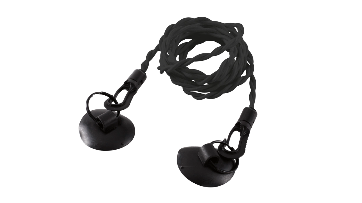 - Καραμπίνες και βεντούζες για εύκολη τοποθέτηση σε αντικείμενα όπως δέντρα, στύλους και πόρτες αυτοκινήτων.