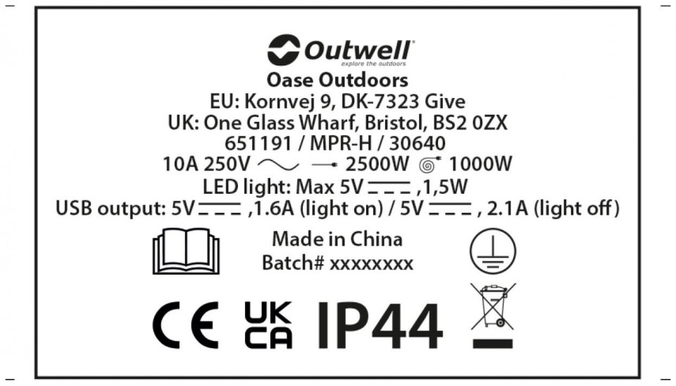 Φωτιζόμενο Πολύπριζο της Outwell ιδανικός για να σας συντροφεύει σε όλες τις εξωτερικές σας δραστηριότητες. Διαθέτει τρεις πρίζες και 2 θύρες usb, καλώδιο 15 μέτρων roll-up με ενσωματομένο φως LED 12. Απαραίτητο για το camping και τις εξωτερικές δραστηριότητες, αν θέλετε να είστε πάντα στην πρίζα, με την εγγύηση της Outwell!
