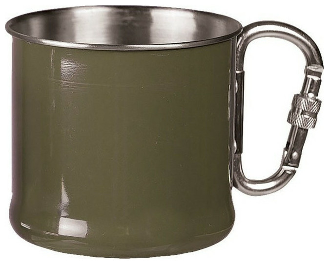 Κούπα χωρητικότητας 500ml από την κορυφαία εταιρεία Mil-Tec, ιδανική για όλες τις εξωτερικές σας δραστηριότητες! Είναι κατασκευασμένη από ανοξείδωτο ατσάλι υψηλής ποιότητας, χάρη στο οποίο αποτελεί μια κατασκευή ανθεκτική στα χτυπήματα. Χάρη στο χερούλι καραμπίνερ που διαθέτει, έχετε τη δυνατότητα να το κρεμάσετε από ένα κρίκο, μια θηλιά ή οπουδήποτε αλλού σας εξυπηρετεί.