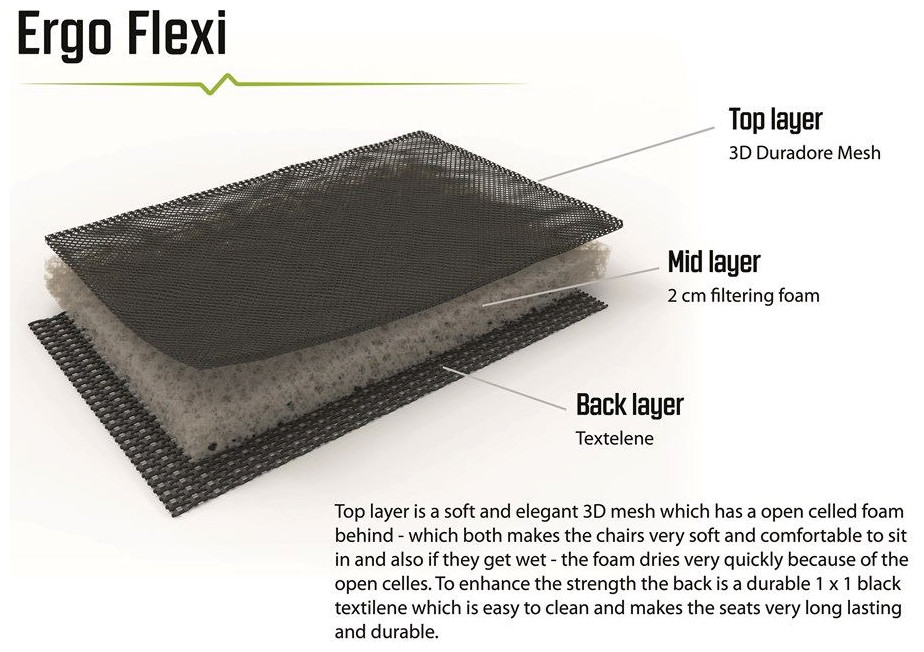 - Ύφασμα: Textiline, 100% πολυεστερικό πλέγμα με αφρό που στεγνώνει γρήγορα