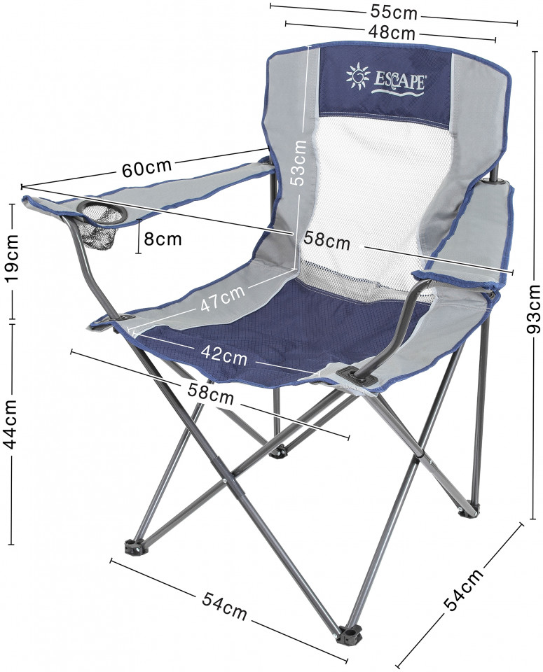 Πτυσσόμενη Καρέκλα της εταιρείας Escape αποτελεί ιδανική επιλογή για να σας συντροφεύει στις υπαίθριες δραστηριότητες σας. Υψηλής ποιότητας και αντοχής υλικά στον σκελετό που λειτουργεί καλά κάτω από οποιεσδήποτε συνθήκες και σε οποιοδήποτε έδαφος. Διαθέτει 600D κυψελοειδές πολυεστερικό ύφασμα στο κάθισμα και διάτρητο ύφασμα σε ολόκληρη την πλάτη για την καλύτερη κυκλοφορία του αέρα καθώς και ενσωματωμένη ποτηροθήκη στο μπράτσο της καρέκλας. Η καρέκλα διαθέτει σιδερένιο σκελετό που δεν χρειάζεται συναρμολόγηση καθώς με τον τρόπο που ανοίγει είναι έτοιμη προς χρήση σε λίγα μόλις δευτερόλεπτα. Η καρέκλα έρχεται σε υψηλής ποιότητας και αντοχής τσάντα μεταφοράς με ιμάντα μεταφοράς. Το μέγεθος της τσάντας μαζί με την καρέκλα είναι περίπου 96x16x16 εκατοστά με το βάρος περίπου 2,9 κιλά, ιδανικό για να την έχετε μαζί σας σε κάθε σας απόδραση.