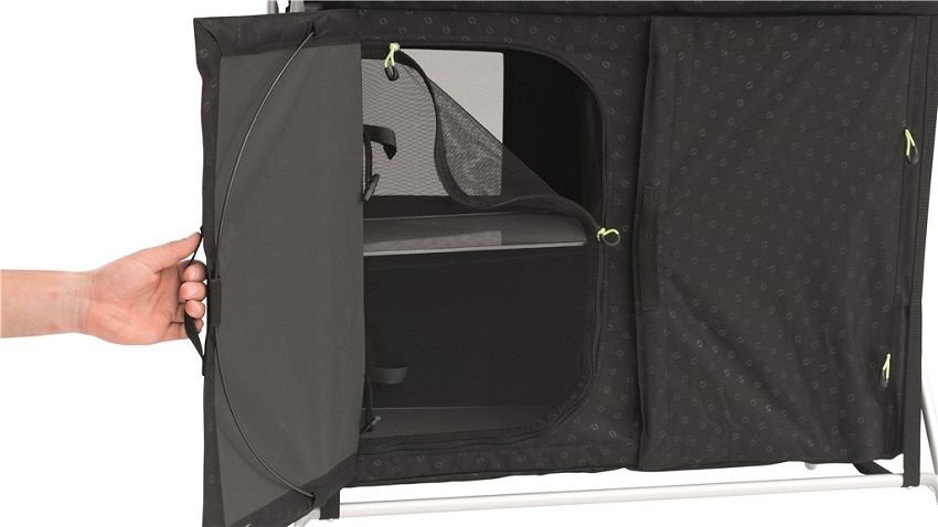 Ποιότητα και εργονομία στο καταπληκτικό τραπέζι κουζίνας Sudbury της Outwell! Από ανθεκτικά υλικά κατασκευής για ασφαλή χρήση στο camping, ανοίγει και διπλώνει σε λίγα δευτερόλεπτα! Με σταθερή επιφάνεια για την προετοιμασία και το μαγείρεμα του φαγητού, δύο αποθηκευτικούς χώρους για τον εξοπλισμό σας (κατσαρόλες, πιάτα, τρόφιμα, ποτά, φιάλη γκαζιού), ράφια για περισσότερη χρηστικότητα, μαγνήτες για άνοιγμα δίχως θόρυβο και ασφαλές κλείσιμο, πλέγμα εξαερισμού για την κυκλοφορία του αέρα, προστατευτικό παρμπρίζ, ρυθμιζόμενα πόδια, θήκες, μικρό μέγεθος και βάρος, στήνεται εύκολα χωρίς ειδική συναρμολόγηση με εργαλεία και μεταφέρεται δίχως κόπο παντού, μέσα στην ειδική του τσάντα! Αναμφίβολα, μία αξιόπιστη λύση επίπλου για κάθε δραστηριότητα στη φύση, με την εγγύηση του ονόματος της Outwell!