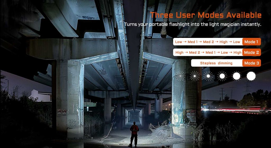- Mode 3: Σταδιακή, απεριόριστη ρύθμιση φωτεινότητας (Stepless dimming)