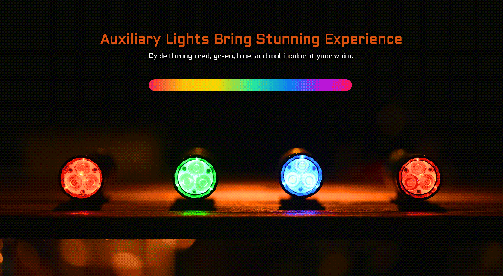 - Βοηθητικά φώτα: κόκκινο – μπλε – πράσινο – πολλαπλά χρώματα