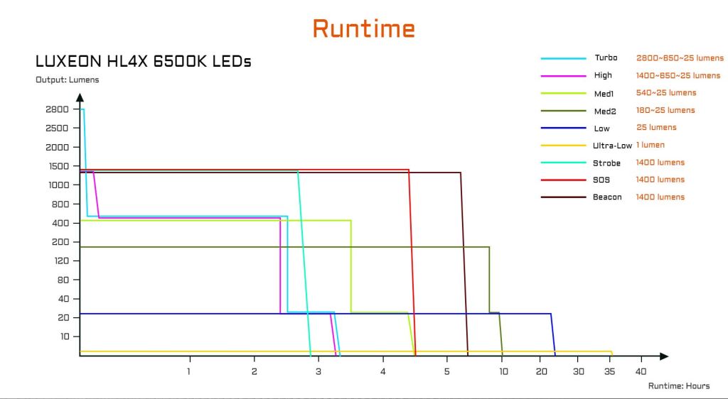 - Ultra Low: 1 lumen — 36 ώρες
