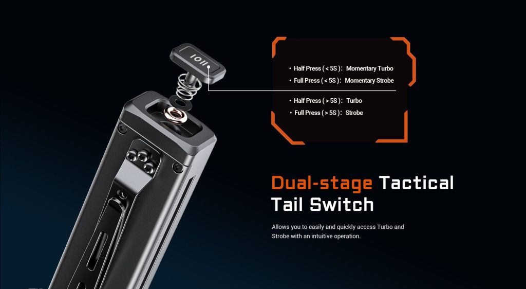 - Ο διπλός διακόπτης στο πίσω μέρος δίνει γρήγορη πρόσβαση στις λειτουργίες Turbo και Strobe