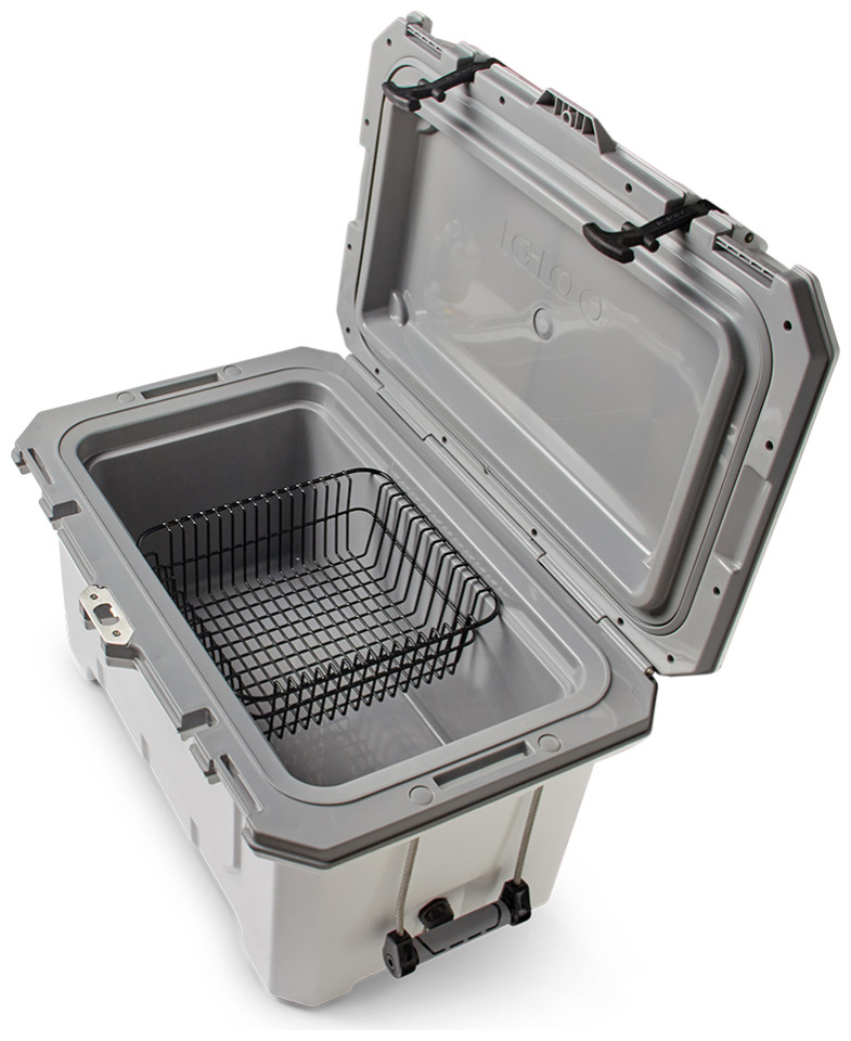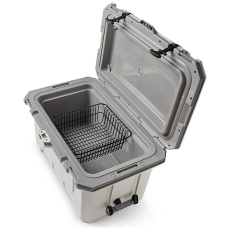 Φορητό ψυγείο πάγου με χωρητικότητα 66 λίτρα ιδανικό για το κάμπινγκ, την παραλία και όλες τις υπαίθριες δραστηριότητες σας! Είναι κατασκευασμένο από υλικά υψηλής ποιότητας, με ενισχυμένες χειρολαβές με τεχνολογία cool riser που βελτιώνει την απόδοση της ψύξης. Διαθέτει υποδοχή πρόσδεσης στο έδαφος για απόλυτη σταθερότητα, υποδοχή λουκέτου και ενσωματωμένο ανοιχτήρι μπουκαλιών για να απολαμβάνετε τα ποτά σας, αφαιρούμενο συρμάτινο καλάθι. Διατηρεί τον πάγο για 7 ημέρες.