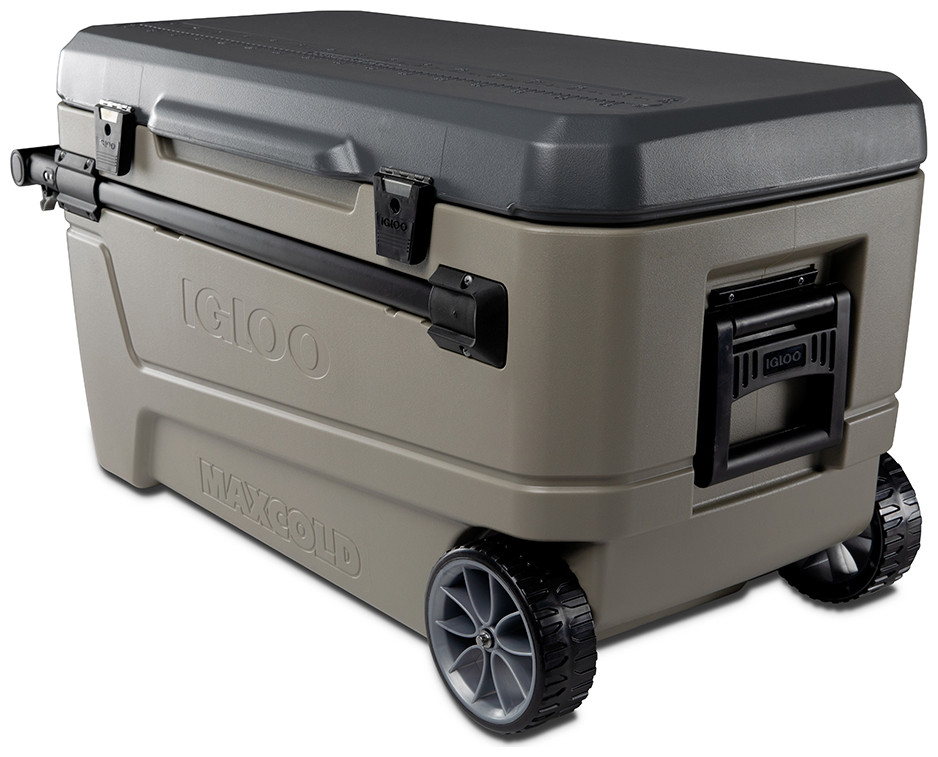 Φορητό ψυγείο πάγου με χωρητικότητα 104 λίτρα ιδανικό για το κάμπινγκ, την παραλία και όλες τις υπαίθριες δραστηριότητες σας! Είναι κατασκευασμένο από υλικά υψηλής ποιότητας, με τηλεσκοπική οριζόντια χειρολαβή Glide™ "slide-and-lock" για καλύτερη μόχλευση ενώ μειώνει τη δύναμη που ασκείται στο χέρι κατά 50%. Η μόνωση Ultratherm στο σώμα και το καπάκι βελτιώνει την απόδοση της ψύξης και διατηρεί τον πάγο μέχρι 5 ημέρες. Διαθέτει μεγάλους τροχούς με μαλακή γόμα για εύκολη κύλιση και μεταφορά ακόμα και σε τραχείς ή βρεγμένες επιφάνειες είτε το τραβάτε είτε το σπρώχνετε. Στο πλάι υπάρχει τάπα για την αποστράγγιση του νερού ενώ διαθέτει σπείρωμα ώστε να μπορείτε εύκολα να συνδέσετε ένα λάστιχο.