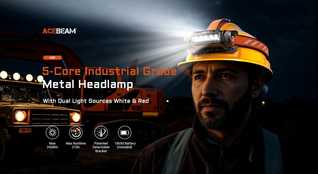 Ο ACEBEAM H35 είναι ένας υψηλής απόδοσης φακός κεφαλής, σχεδιασμένος για βιομηχανικές εργασίες με υψηλές απαιτήσεις. Διαθέτοντας διπλή πηγή φωτός (κόκκινο και λευκό), προσφέρει ισχυρό κόκκινο φως 200 lumens με λειτουργία SOS και μέγιστη ισχύ στο λευκό φως 2600 lumens για φωτισμό ευρείας κάλυψης. Με χρόνο λειτουργίας έως και 216 ώρες στη λειτουργία ultra-low, καλύπτει πλήρως τις ανάγκες παρατεταμένης χρήσης. Τροφοδοτείται από μία μπαταρία λιθίου 18650, ενώ το πατενταρισμένο στήριγμα της ACEBEAM με ρύθμιση γωνίας 70° επιτρέπει ευέλικτη μετάβαση μεταξύ μακρινού και κοντινού φωτισμού. Με βαθμό στεγανότητας IP68 και στιβαρή κατασκευή, αποτελεί ιδανική επιλογή για βιομηχανικές εργασίες, αποστολές έρευνας & διάσωσης και τεχνικούς ελέγχους σε απαιτητικά περιβάλλοντα.