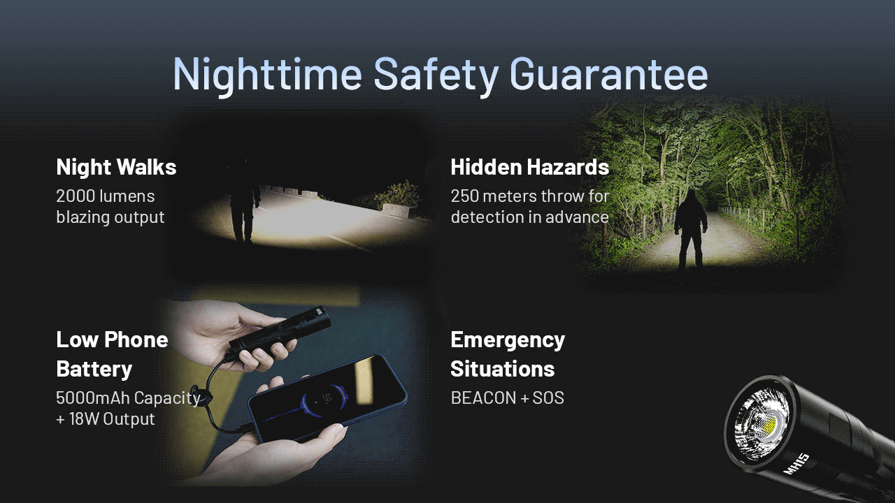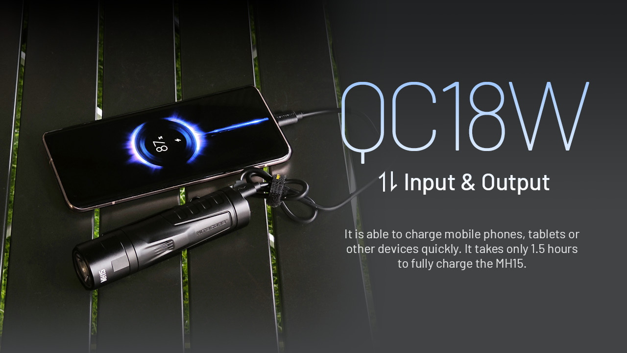Ο φακός  Led Multi Task Hybrid MH15 της Nitecore είναι ένας μεγάλης απόστασης, επαναφορτιζόμενος φακός με αμφίδρομη θύρα USB-C και LED Liminus SST40. Με πολύ ισχυρό φωτισμό που φθάνει τα 2000 lumens και εμβέλεια τα 250 μέτρα σας δίνει την δυνατότητα να ανιχνεύετε έγκαιρα αντικείμενα και κινδύνους έχοντας περισσότερο χρόνο αντίδρασης. Η μπαταρία του είναι χωρητικότητας 5000mAh ενώ διαθέτει γρήγορη φόρτιση με είσοδο-έξοδο 18W επιτυγχάνοντας πλήρη φόρτιση σε 1,5 ώρα και μπορεί να χρησιμοποιηθεί σαν power bank! Στην χαμηλή λειτουργία του η οποία είναι στα 5 lumen η μπαταρία του μπορεί να διαρκέσει μέχρι 200 ώρες!