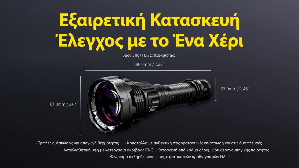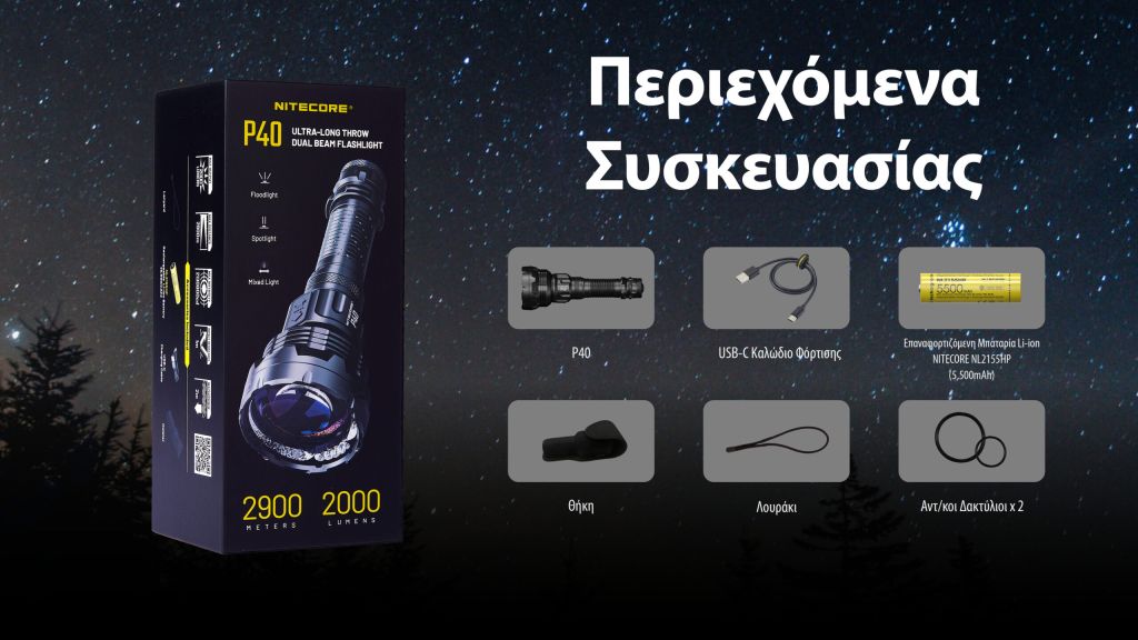 ΦΑΚΟΣ LED NITECORE PRECISE P40, Ultra long throw , 2900m