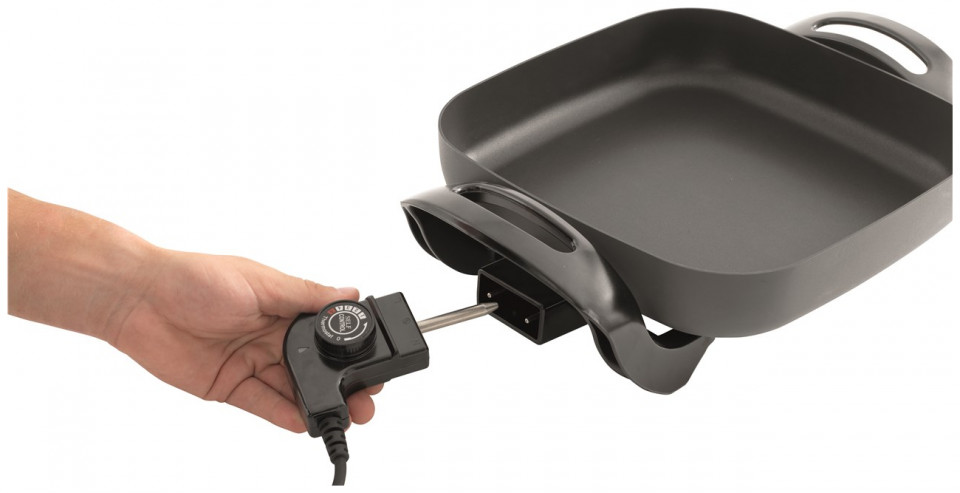 Η Whitby Skillet της εταιρείας Outwell είναι μία εύχρηστη μαγειρική εστία που θα σας λύσει τα χέρια στο camping και στις διακοπές σας! Είναι εύκολη στη χρήση και λειτουργεί με ρεύμα 230V. Είναι κατασκευασμένη από αλουμίνιο με αντικολλητικό φινίρισμα και οι λαβές της είναι κατασκευασμένες από πλαστικό και είναι ανθεκτικές στην θερμότητα. Το καπάκι είναι κατασκευασμένο από σκληρυμένο γυαλί με λαβή και βαλβίδα ασφαλείας. Το βάθος της είναι κατάλληλο τόσο για ψήσιμο όσο και για τηγάνισμα και διαθέτει αντικολλητική επίστρωση. Επιπλέον, διαθέτει ρυθμιζόμενο έλεγχο θερμοκρασίας και σας επιτρέπει να επιλέξετε την ζεστή ρύθμιση ώστε να σερβίρετε απευθείας. Η κατανάλωση ενέργειας είναι έως 1300W και διαθέτει καλώδιο 2.5m. Η μαγειρική εστία Whitby Skillet θα κάνει το μαγείρεμα στις διακοπές σας εύκολο και άνετο!