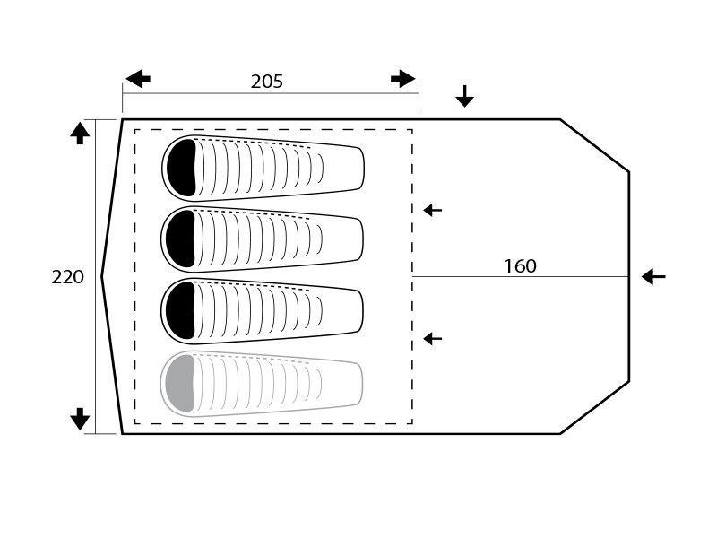 - Εξωτερική σκηνή (flysheet): 100% polyester, αδιαβροχοποίηση 4.000 χιλιοστών στήλης νερού