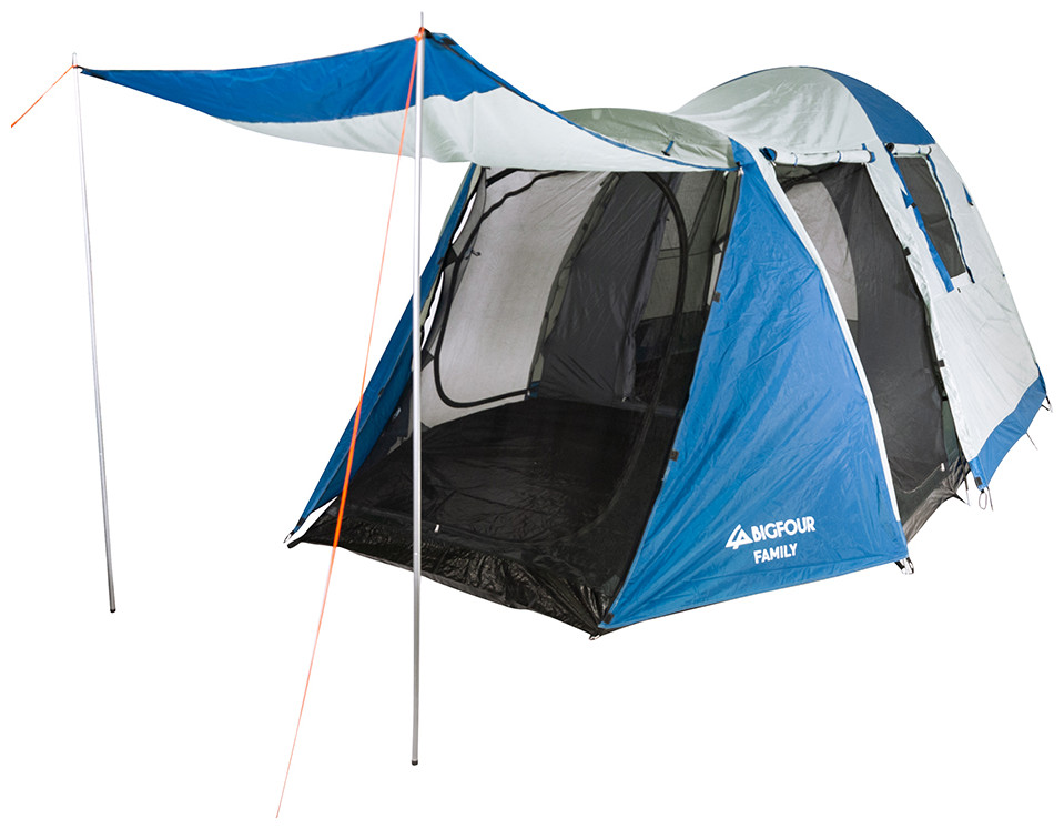 Οικογενειακή σκηνή Bigfour Family με δυνατότητα χωρητικότητας έως 6 άτομα, ιδανική για να σας συντροφεύει σε όλες τις υπαίθριες δραστηριότητες σας με την παρέα ή την οικογένεια σας. Κατασκευασμένη από ποιοτικά υλικά υψηλής ποιότητας για την μέγιστη προστασία σας από τις εξωτερικές καιρικές συνθήκες όπου και αν βρίσκεστε. Διπλό πανί με εξωτερικό 190Τ Polyester PU Coated με αδιαβροχοποίηση 2000mm, κουνουπιέρα εσωτερικά και 190Τ Polyester διαπνέον με θερμοκολλημένες ραφές για την μέγιστη προστασία σας. Διαθέτει 5 πόρτες με κουνουπιέρα για εύκολη πρόσβαση ανα πάσα στιγμή και 2 παράθυρα με κουνουπιέρα για την προστασία σας από τα έντομα και τον καλύτερο δυνατό εξαερισμό του χώρου, δυνατότητα να κλείσετε τα παράθυρα με φερμουάρ.