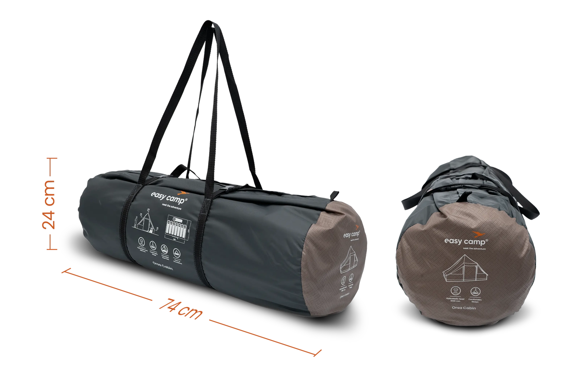 Η Σκηνή 8 Ατόμων Easy Camp Orsa Cabin είναι ιδανική για οικογενειακές κατασκηνώσεις ή εκδρομές με φίλους. Με αδιαβροχοποίηση 3000mm, προσφέρει εξαιρετική προστασία από τις καιρικές συνθήκες. Το εσωτερικό ύψος της κυμαίνεται από 170 cm έως 270 cm, παρέχοντας άνετο χώρο για όλους τους κατασκηνωτές. Κατασκευασμένη από πολυεστέρα 190T με επίστρωση PU και επιβραδυντικό φωτιάς, αυτή η σκηνή είναι ανθεκτική και ασφαλής. Η μεγάλη μπροστινή πόρτα διευκολύνει την είσοδο και την έξοδο, ενώ τα πάνελ από πλέγμα προσφέρουν εξαιρετικό αερισμό. Οι καλυμμένες χαμηλές ανοίξεις εξαερισμού και ο αερισμός στο πίσω μέρος της σκηνής εξασφαλίζουν άνετη ροή αέρα, μειώνοντας τη συμπύκνωση. Με έξι τσέπες οργάνωσης και σημεία κρεμάσματος, η σκηνή αυτή είναι πρακτική και λειτουργική. Το βάρος της είναι 9,4 kg και ο χρόνος τοποθέτησης μόλις 18 λεπτά, κάνοντάς την ιδανική για γρήγορες και εύκολες κατασκηνώσεις. Σημειώστε ότι η έκθεση σε άμεσο ηλιακό φως μπορεί να προκαλέσει ζημιά, γι' αυτό φροντίστε να την προστατεύετε όταν δεν τη χρησιμοποιείτε.