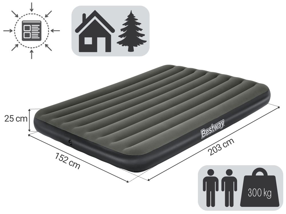 BESTWAY Tritech™ Air Mattress Queen 2.03x1.52x25cm, Φουσκωτό Στρώμα Ύπνου Διπλό, 6713N