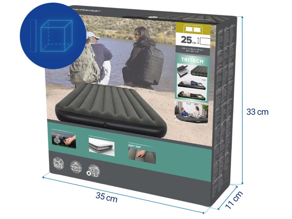 Κατασκευασμένο με το ειδικό σύνθετο υλικό TriTech® της Bestway, το οποίο είναι ανθεκτικό σε σκισίματα, στιβαρό και διατηρεί το σχήμα του, εξασφαλίζοντας μακροχρόνια χρήση ακόμη και με συχνό φούσκωμα και ξεφούσκωμα. -