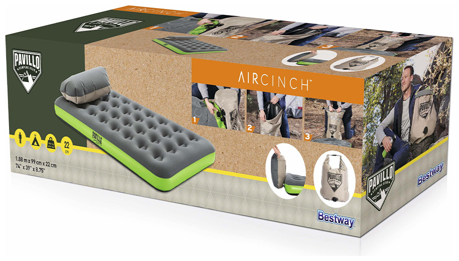 Φουσκωτό στρώμα με Airlite Pillow Pump, εύκολο στη χρήση και άνετο για camping.