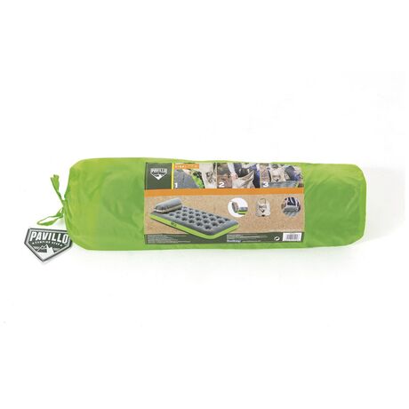 Ανακαλύψτε το Φουσκωτό Στρώμα Roll&Relax Pavillo, ιδανικό για τις εξορμήσεις σας στη φύση ή για χρήση στο σπίτι. Με διαστάσεις 188 x 99 x 22 cm και μέγιστο βάρος 150 kg, αυτό το στρώμα προσφέρει άνεση και στήριξη για έναν ξεκούραστο ύπνο. Το Airlite Pillow Pump λειτουργεί ως αντλία αέρος, μαξιλάρι και σάκος μεταφοράς, επιτρέποντάς σας να φουσκώσετε το στρώμα μέσα σε μόλις 60 δευτερόλεπτα χωρίς να χρειάζεται να έχετε μαζί σας τρόμπα. Η βαλβίδα με κλείδωμα και quick release διευκολύνει τη χρήση, ενώ η βελούδινη επιφάνεια προσφέρει μια άνετη αίσθηση.