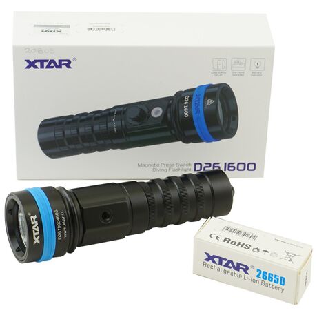 Φακός Κατάδυσης της Xtar ιδανικός συνεργάτης για καταδύσεις και ψάρεμα. Με έξοδο 1600 Lumens ροή φωτός και διάρκεια ζωής 2,48 ώρες για να σας συντροφεύει με άνεση για μια ολοκληρωμένη εμπειρία κατάδυσης. Κατασκευασμένος από αντιδιαβρωτικό υλικό και αδιαβροχοποίηση IPX8 στεγανό έως 100 μέτρα. Χρυσά τυπωμένα και διπλά ελατήρια πού εξασφαλίζουν καλύτερη αγωγιμότητα. Με προστασία αντίστροφης πολικότητας και έξυπνος έλεγχος θερμοκρασίας.