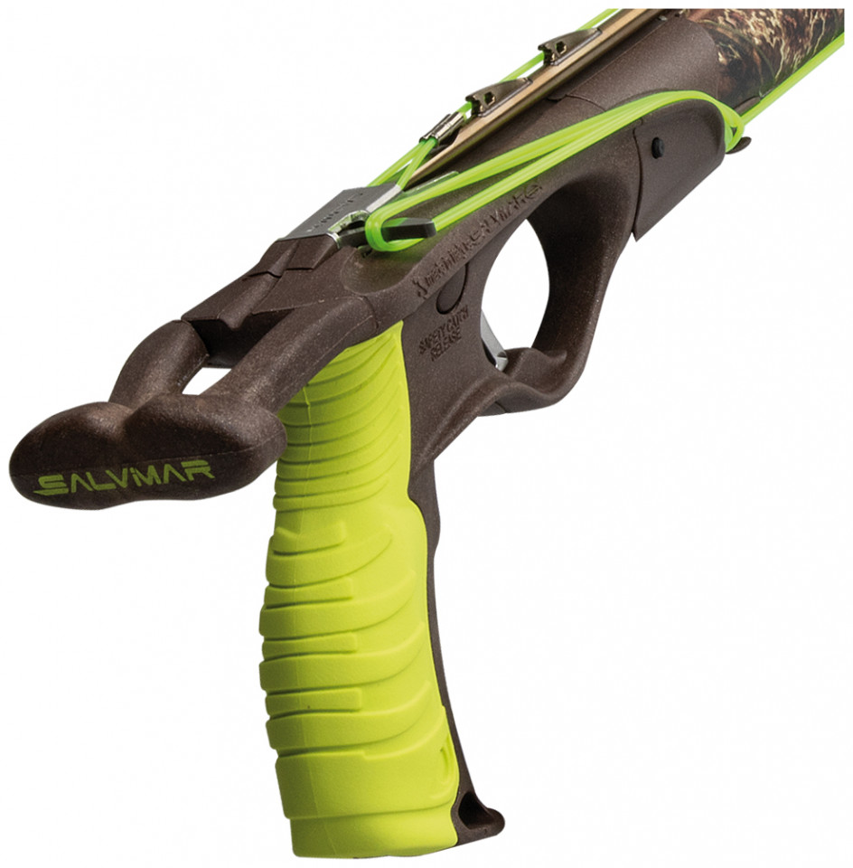 Ψαροτούφεκο από την κορυφαία εταιρεία Salvimar κατασκευασμένο από αλουμίνιο αεροπορικού τύπου που το καθιστά εξαιρετικά ανθεκτικό στη συχνή χρήση και στα χτυπήματα. Διαθέτει λαβή με μεταλλικό μηχανισμό σκανδάλης καθώς και ρύθμιση ευαισθησίας σκανδάλης για να το προσαρμόζετε εκεί που σας βολεύει. Επιπλέον, διαθέτει αφαιρούμενο τακουνάκι όπλισης.