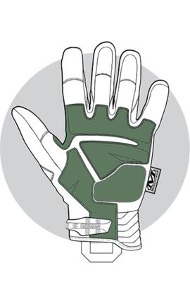 στη σκανδάλη και σωστό χειρισμό του εξοπλισμού ο δείκτης δεν διαθέτει προστατευτικό από θερμοπλαστικό καουτσούκ (TPR). Οι περιοχές υψηλής φθοράς στην παλάμη είναι παραγεμισμένες με υλικό XRD® που απορροφά τους κραδασμούς και μειώνει την κόπωση του χεριού στο πεδίο και η μανσέτα από χυτό νεοπρένιο παρέχει πολύ καλή εφαρμογή στον καρπό. Η κατασκευή της παλάμης δύο περιοχών ενισχύει τις περιοχές υψηλής φθοράς και μειώνει το "μάζεμα" του υφάσματος κατά την χρήση των όπλων ή των εργαλείων. Γάντια προστασίας από την μεγαλύτερη Αμερικάνικη εταιρία στο είδος που προμηθεύει και τον Αμερικάνικο Στρατό.