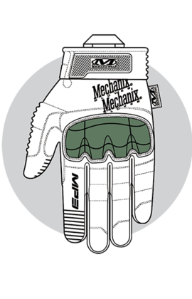 Ένα ισχυρό μονοκόμματο θερμοπλαστικό καουτσούκ (TRP) που προστατεύει τις αρθρώσεις είναι ανατομικά σχεδιασμένο ώστε να απορροφά την βίαιη πρόσκρουση το πίσω μέρος του χεριού ενώ ταυτόχρονα βελτιώνει την συνολική κινητικότητα κατά την διάρκεια σκληρών επιχειρήσεων. Το εξωτερικό στον αντίχειρα και τα άλλα δάχτυλα προστατεύονται από γέμιση τύπου ακορντεόν από υλικό EVA 3mm, ενώ το χαμηλού προφίλ κλείσιμο από θερμοπλαστικό καουτσούκ (TRP) δημιουργεί ασφαλή εφαρμογή στον καρπό. Τα M-Pact® 3 διαθέτουν εσωτερική ενίσχυση στην άκρη των δαχτύλων για ακραία αντοχή στην τριβή και ανάγλυφη σχηματομορφή για πρόσθετη πρόσφυση όταν την χρειάζεστε. Η κατασκευή της παλάμης δύο περιοχών ενισχύει τις περιοχές υψηλής φθοράς και μειώνει το "μάζεμα" του υφάσματος κατά την χρήση των όπλων ή των εργαλείων.