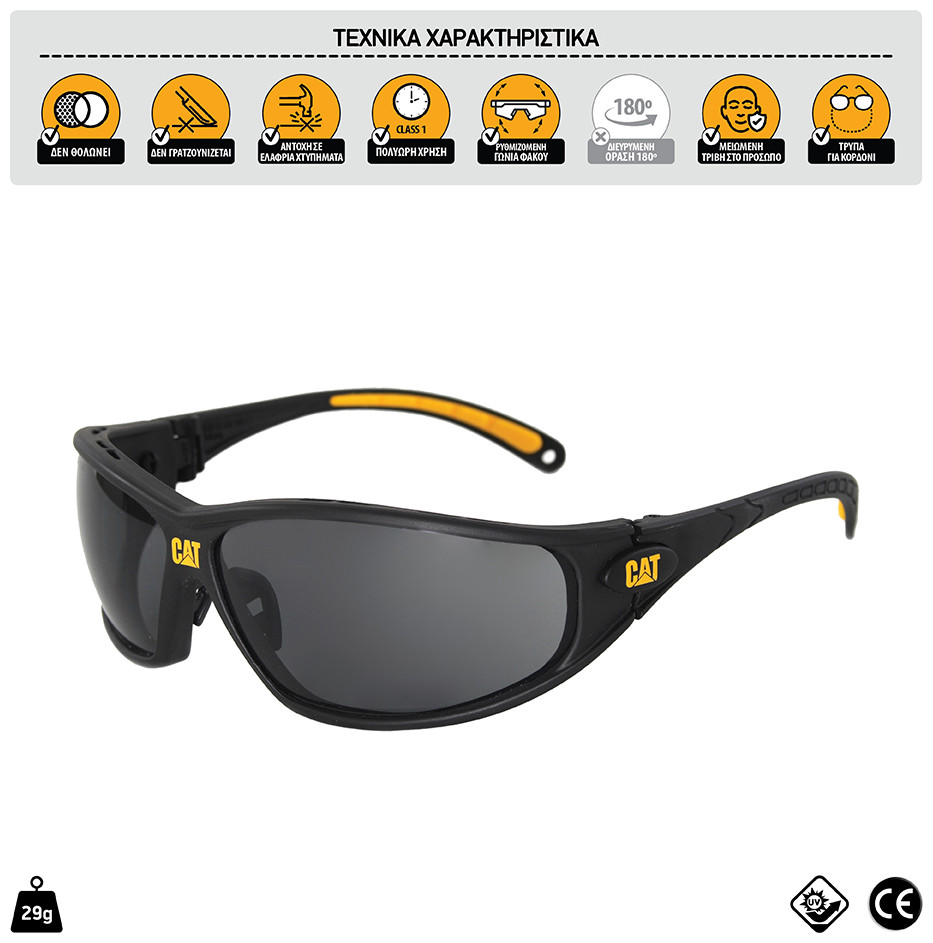 - Σχεδιασμένα για να προστατεύουν τα μάτια σας σε επικίνδυνο περιβάλλον εργασίας, τα γυαλιά CAT θα σας παρέχουν εξαιρετική ποιότητα και ασφάλεια με στυλ
