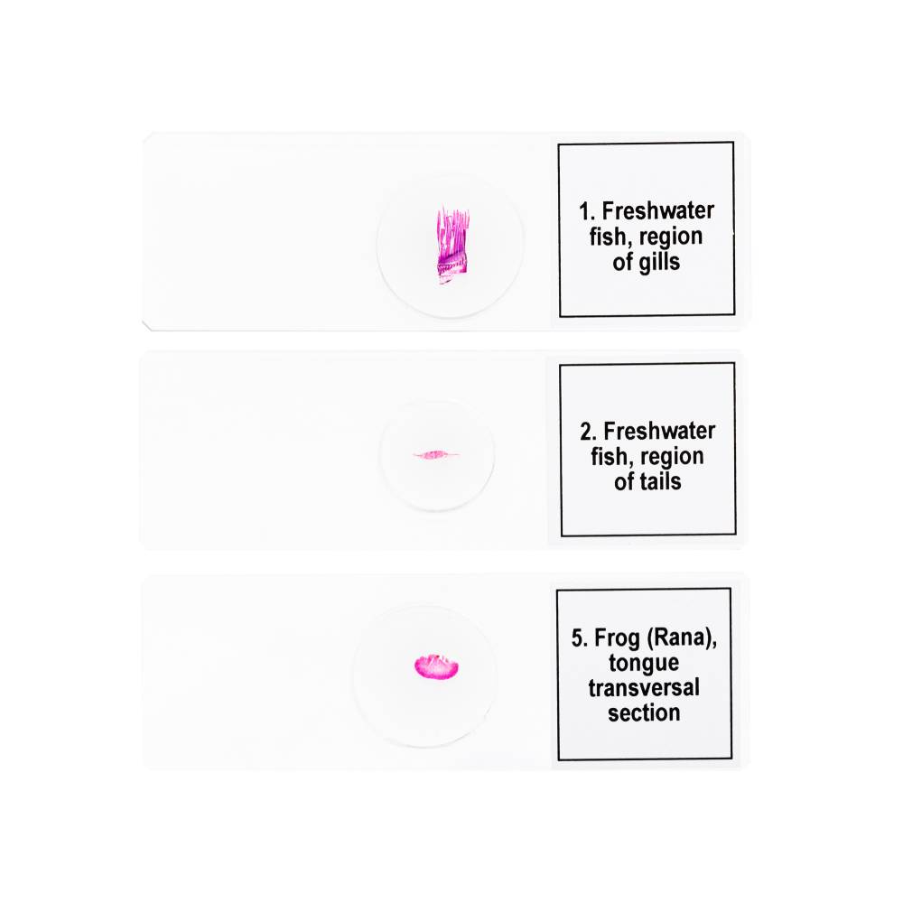 Το σετ έτοιμων παρασκευασμάτων Discovery «Αμφίβια» περιλαμβάνει πέντε έτοιμες διαφάνειες κατασκευασμένες για επαγγελματική μελέτη ψαριών και αμφίβιων.