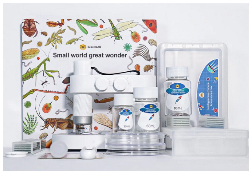 Ψηφιακό μικροσκόπιο smart με την υπογραφή της κορυφαίας εταιρείας BeaverLab που σας επιτρέπει να μελετάτε δείγματα και να ρυθμίζετε την μεγέθυνση από 1x έως 400x. Αφήστε τα παιδιά σας να εξερευνήσουν την κάθε λεπτομέρεια αντικειμένων, εντόμων και φυτών και δώστε τους τη χαρά της παρατήρησης μέσα από μια διασκεδαστική εμπειρία! Στο βιβλίο καταγραφής που περιλαμβάνεται έχει τη δυνατότητα να αρχειοθετεί τις παρατηρήσεις του με αυτοκόλλητα ώστε να αποκτά περισσότερη γνώση μέσω του παιχνιδιού και να γίνεται ακόμη πιο ευχάριστη η μάθηση! Ο οπτικός σωλήνας μπορεί να αποσπαστεί από την βάση δίνοντας σας την δυνατότητα για παρατηρήσεις ακόμα και σε εξωτερικούς χώρους χαρίζοντάς σας απόλυτη ελευθερία παίρνοντας τον παντού! Η μεγάλης διάρκειας επαναφορτιζόμενη μπαταρία του σας προσφέρει 600 λεπτά συνεχούς χρήσης όταν ο οπτικός σωλήνας είναι στη βάση του και 120 λεπτά συνεχούς χρήσης όταν αφαιρεθεί από την βάση. Στη συσκευασία θα βρείτε και ένα έγχρωμο βιβλίο με τίτλο “Small world - great wonder” (Μικρός κόσμος – μεγάλο θαύμα), το οποίο είναι γραμμένο στα αγγλικά, για να εμπλουτίσετε τις γνώσεις σας! Με το Μ1Α δεν έχετε την ανάγκη καλωδίου καθώς μπορεί να συνδεθεί με δίκτυο Wi-Fi ενώ μπορείτε να μεταφέρετε τις εικόνες και τα βίντεο σας εύκολα απευθείας στο smartphone ή το tablet σας!