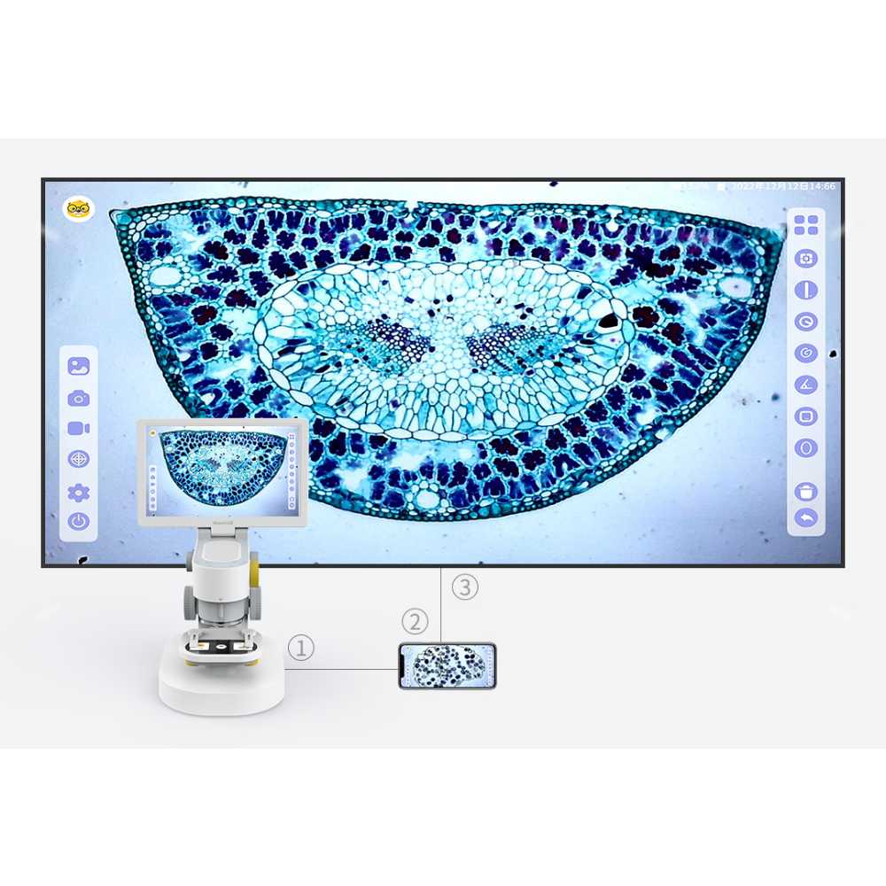 Το ψηφιακό μικροσκόπιο smart MX της κορυφαίας εταιρείας BeaverLab με ενσωματωμένη μεγάλη multi-touch οθόνη αφής LCD 9'' σας προσφέρει υψηλή ανάλυση (HD, 1080P) και σε συνδυασμό με την ισχυρή μεγέθυνση έχετε τρισδιάστατες εικόνες σε μικροσκοπικές λεπτομέρειες. Με το περιστρεφόμενο ρύγχος του και τους τρεις διαφορετικούς αντικειμενικούς φακούς σας επιτρέπει να ρυθμίζετε την μεγέθυνση στο 100x, 600x και 1200x. Η έγχρωμη οθόνη IPS ανάλυσης 1024x600 αποδίδει πραγματικά χρώματα και πιο ζωντανά σε σύγκριση με οθόνες TN και VA καθώς διαθέτει βάθος χρώματος 24bit RGB! Ο αισθητήρας HD 500w CMOS 5MP που διαθέτει σας προσφέρει υψηλή ανάλυση και απίστευτη ακρίβεια και ευκρίνεια στις εικόνες των παρατηρούμενων αντικειμένων! Διαθέτει δύο κοχλίες εστίασης, ένα μεγάλο για χοντρική εστίαση και ένα πιο μικρό για πιο ακριβή εστίαση. Με άνω και κάτω ρυθμιζόμενο φωτισμό μέσω λαμπtήρων LED σας προσφέρει επαγγελματική προβολή και παρατήρηση τόσο διαφανών όσο και αδιαφανών δειγμάτων. Τραβήξτε φωτογραφίες και βίντεο των δειγμάτων σας, πραγματοποιήστε μετρήσεις, προσθέστε σημειώσεις και επεξεργαστείτε τα αρχεία σας όπως εσείς θέλετε ενώ μπορείτε να συνδέσετε ποντίκι, σταθερό ή φορητό υπολογιστή και προτζέκτορα. Η φόρτιση της συσκευής γίνετε γρήγορα μέσω θύρας USB Type-C ενώ διαθέτει μπαταρία λιθίου μεγάλης χωρητικότητας η οποία σας εξασφαλίζει αυτονομία και μπορεί να ανταπεξέλθει στις απαιτήσεις μιας ημέρας. Κατάλληλο για χρήση σε βιομηχανίες, σε επιστημονική έρευνα αλλά και από ερασιτέχνες ως χόμπι με εφαρμογή σε διάφορα επίπεδα!
