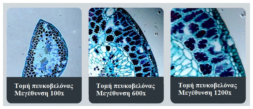 - Μεγέθυνση: 20 - 50 x / 800 x / 1600 x
