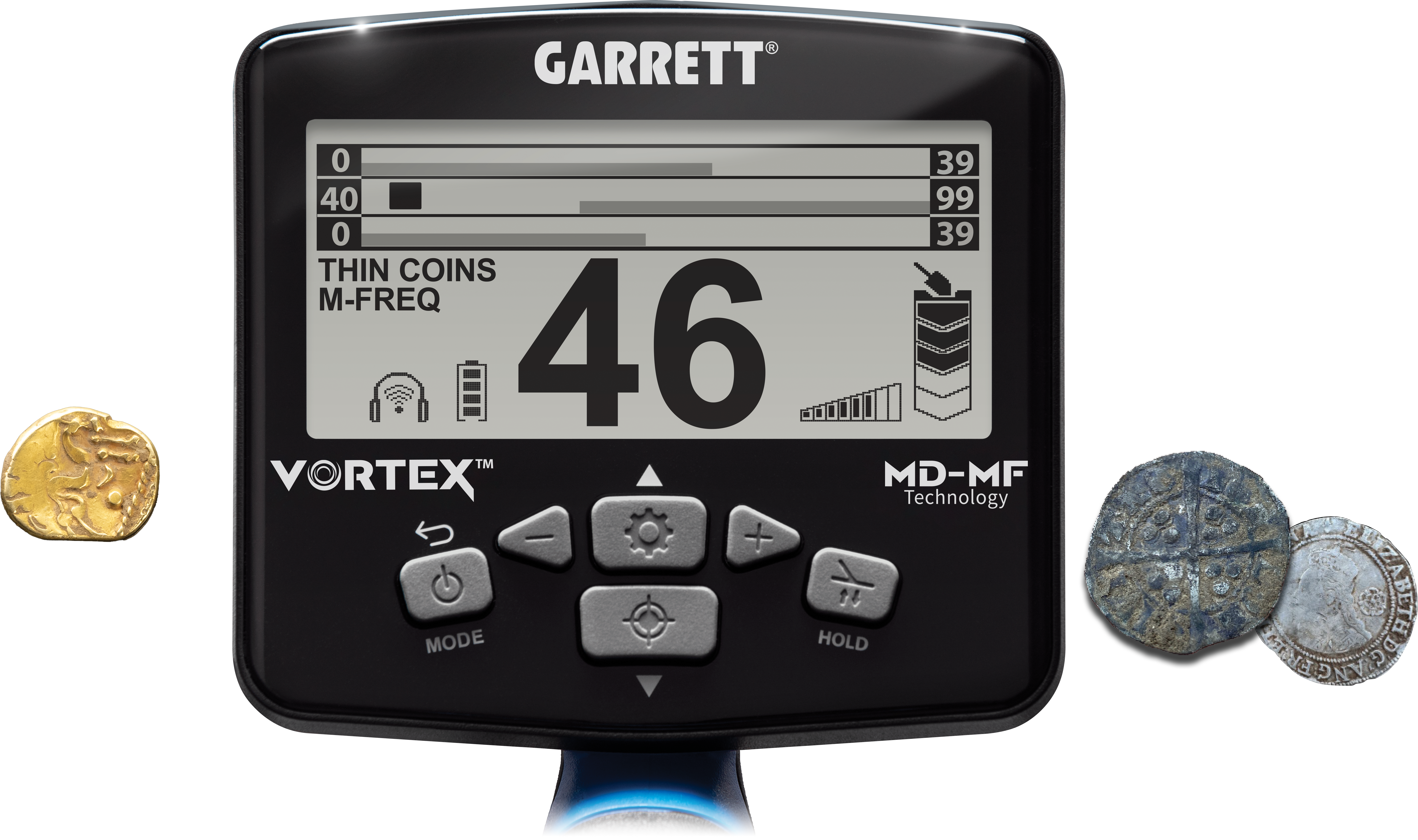 Η μοναδική λειτουργία του Garrett βοηθά στον σωστό εντοπισμό πολύπλοκων σιδερένιων αντικειμένων, όπως καπάκια μπουκαλιών και ατσάλινες ροδέλες.