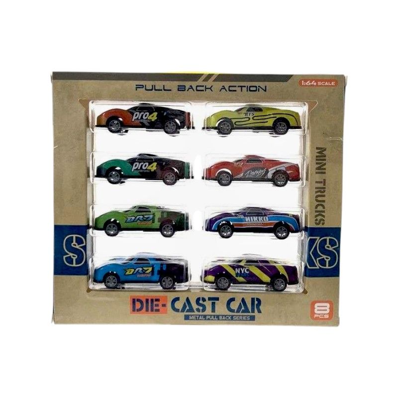 Σετ μεταλλικών αυτοκινητακίων 8 τεμαχίων με Pull Back μηχανισμό, ασφαλή για παιδιά από 3 ετών.