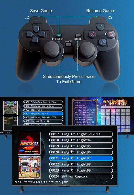 Περιλαμβάνει ασύρματη κονσόλα παιχνιδιών με HDMI Stick και δύο ασύρματα χειριστήρια. Διαθέτει ενσωματωμένα όλα τα κλασσικά παιχνίδια που λάτρεψαν μικροί και μεγάλοι.