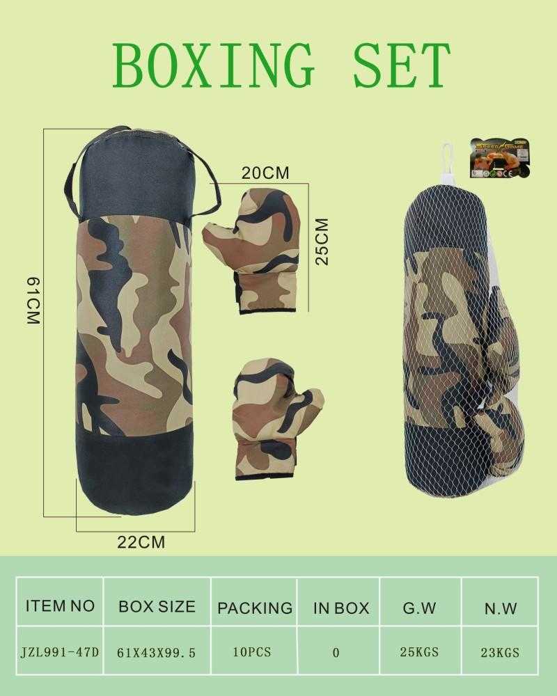 Το Παιδικό Σετ Μποξ, είναι ιδανικό για τους μικρούς μας φίλους που θέλουν να ανακαλύψουν τον κόσμο των πολεμικών τεχνών και της άθλησης. Το σετ περιλαμβάνει έναν σάκο με μαλακή ανθεκτική επένδυση από δερματίνη, διαστάσεων 61 x 22 cm, που προσφέρει ασφαλή και ευχάριστη εμπειρία προπόνησης. Μαζί με τον σάκο, περιλαμβάνονται και γάντια με ενισχυμένη προστατευτική γέμιση, διαστάσεων 25 x 20 cm, που εξασφαλίζουν την ασφάλεια των χεριών κατά τη διάρκεια της προπόνησης. Το σετ πληροί όλα τα πρότυπα ασφαλείας και είναι κατάλληλο για παιδιά ηλικίας 3 ετών και άνω. Ενθαρρύνετε την κίνηση και την ανάπτυξη των δεξιοτήτων των παιδιών σας με αυτό το διασκεδαστικό και ασφαλές σετ μποξ!