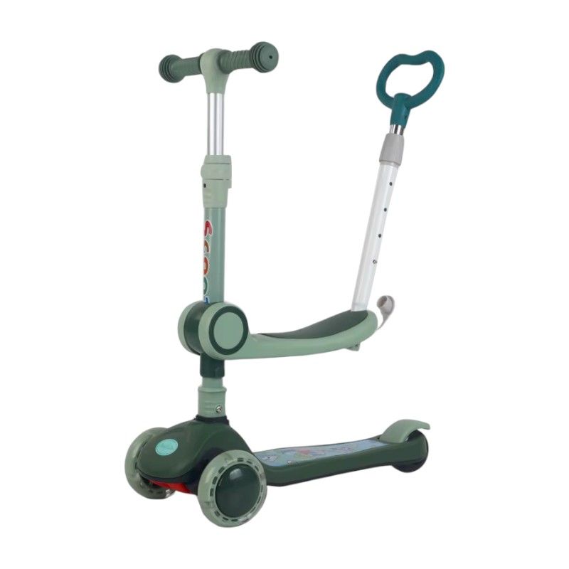 Ανακαλύψτε το Παιδικό Πατίνι Τρίκυκλο με Κάθισμα και Λαβή Green, ιδανικό για μικρούς εξερευνητές! Το πατίνι διαθέτει υπέροχα παιδικά χρώματα και πτυσσόμενο σκελετό, διευκολύνοντας τη μεταφορά και την αποθήκευση. Η εργονομική του σχεδίαση εξασφαλίζει εύκολο χειρισμό, επιτρέποντας στους γονείς να απολαμβάνουν ατελείωτες βόλτες με τα παιδιά τους. Κατασκευασμένο από ανθεκτικά υλικά, το πατίνι προσφέρει μέγιστη ασφάλεια και αντοχή, με ρυθμιζόμενο ύψος τιμονιού και ποδόφρενο για επιπλέον έλεγχο. Το κάθισμα και η ενσωματωμένη χειρολαβή για τον γονέα είναι ρυθμιζόμενα, προσφέροντας άνεση και ευκολία. Οι πολύχρωμες Led ρόδες φωτίζονται κατά την κίνηση, προσθέτοντας μια διασκεδαστική διάσταση στις βόλτες. Το μέγιστο φορτίο του πατινιού είναι έως 50kg. Οι μπροστινές ρόδες έχουν διάμετρο 120χ24mm και οι πίσω 100χ48mm, εξασφαλίζοντας σταθερότητα και ασφάλεια σε κάθε βόλτα.