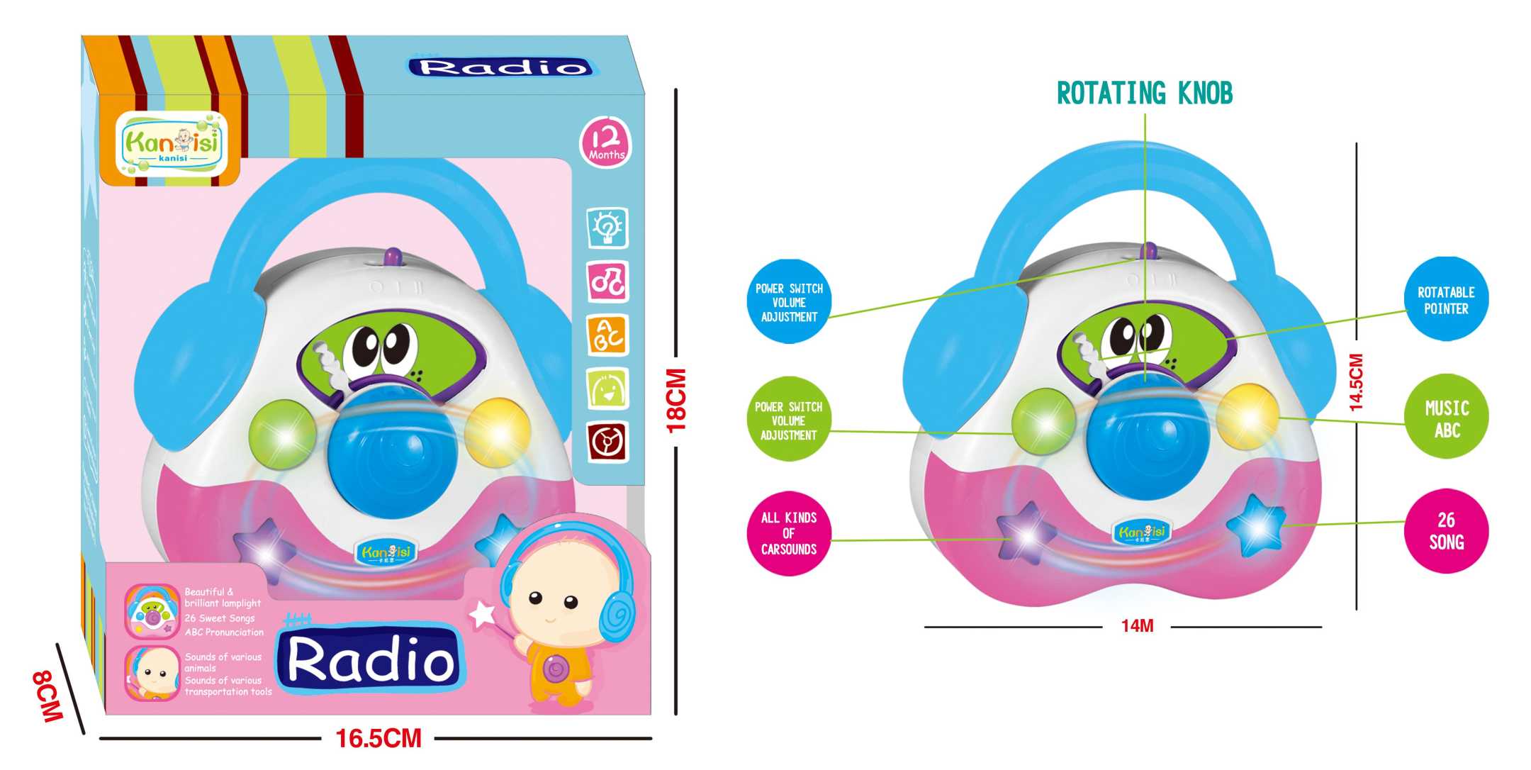 Βρεφικό παιχνίδι ραδιοφωνάκι, σε υπέροχο πολύχρωμο σχεδιασμό, με ήχους, μουσική και φωτισμό που θα κεντρίσουν το ενδιαφέρον του μωρού σας.