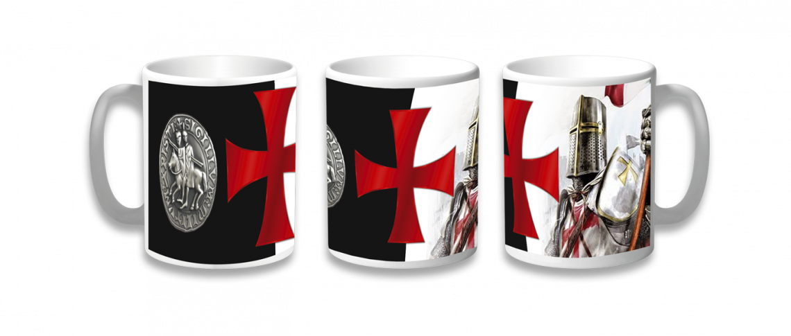 Κεραμική κούπα της Albainox με τύπωμα των Ναϊτών Ιπποτών, της σφραγίδας του Vichiers των στρατιωτών του Χριστού Sigillum Militum Xpist και Cruz Templaria. Απολαύστε τον καφέ σας σε αυτή την πανέμορφη κούπα ή κάντε ένα δώρο στους φίλους σας!