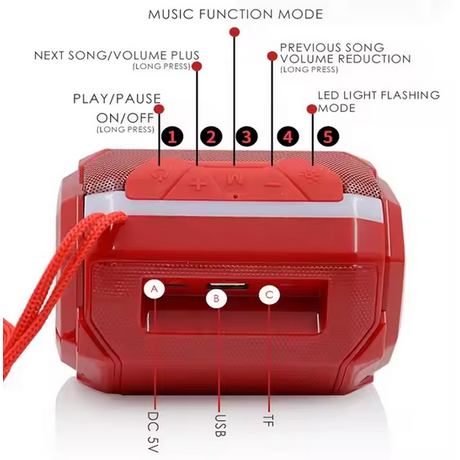 Ασύρματο ηχείο Bluetooth με υψηλής ποιότητας ήχο και φωτισμό LED, σε πρακτικό μέγεθος με λουράκι μεταφοράς για εύκολη μεταφορά παντού.