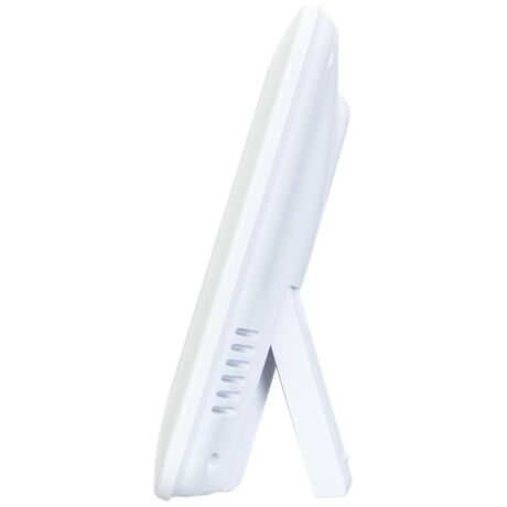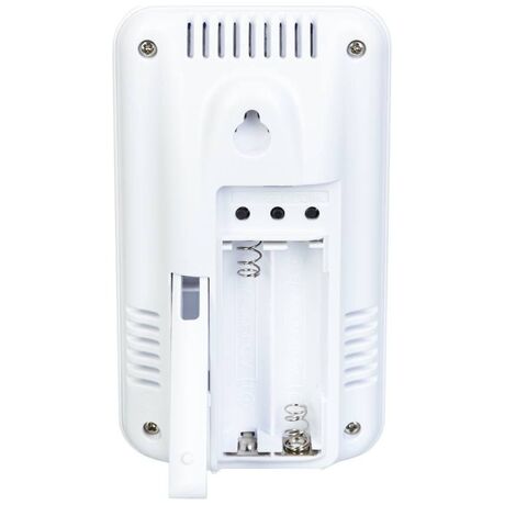 Διαθέτει κομψό και μίνιμαλ σχεδιασμό ενώ πίσω από την οθόνη θα βρείτε υποδοχή κρέμασης για εύκολη ανάρτηση σε τοίχο αλλά και πόδι στήριξης για τοποθέτησή του σε κάθε οριζόντια επιφάνεια. Η συσκευή λειτουργεί με 2 κοινές μπαταρίες τύπου ΑΑΑ και η εξωτερική μονάδα με 2 μπαταρίες ΑΑΑ (οι μπαταρίες δεν περιλαμβάνονται).