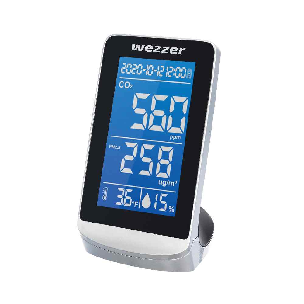 Διαθέτει ευανάγνωστη οθόνη με ενδείξεις ώρας και ημερολογίου, μέτρηση μικροσωματιδίων, ποσοστό CO², σχετική υγρασία και θερμοκρασία για να έχετε μια ολοκληρωμένη εικόνα των παραμέτρων του χώρου σας, ιδιαίτερα σε όσους έχουν παιδιά και βρέφη είναι απαραίτητο να γνωρίζουν το πόσο κατάλληλος και ασφαλής είναι ο αέρας που αυτά αναπνέουν και οι συνθήκες του περιβάλλοντος χώρου αποφεύγοντας έτσι πιθανά προβλήματα στον αναπτυσσόμενο οργανισμό τους. Πέρα από τις ενδείξεις η συσκευή αυτή σας ειδοποιεί κάθε φορά που η συγκέντρωση CO² είναι πέρα από τα ανεκτά όρια ώστε να αερίσετε το χώρο σας.