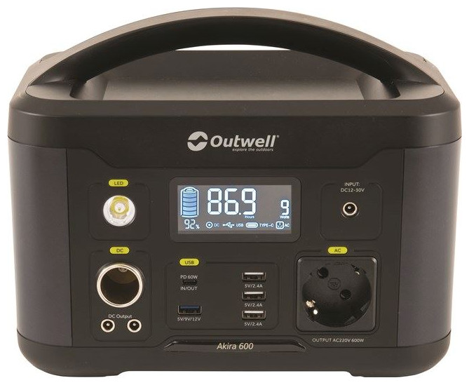 Έξυπνη ενέργεια πέρα από κάθε φαντασία και αξιόπιστη λύση από την Outwell, το Power Station Akira 600, για περιπτώσεις που χρειάζεστε ρεύμα εκτός δικτύου ή εν κινήση, για να χαρείτε το ταξίδι σας! Το Outwell Akira 600 Power Station που μπορεί να επαναφορτιστεί στο δρόμο από την μπαταρία του οχήματός σας. Το μοντέρνο οικογενειακό κάμπινγκ περιλαμβάνει μια μεγάλη γκάμα βασικών ηλεκτρονικών ειδών, οπότε απελευθερωθείτε από τα κάμπινγκ με ηλεκτρικά άγκιστρα και πηγαίνετε εκεί που σας πάει η διάθεση. Ανθεκτικό, ισχυρό, ευέλικτο και εύκολο στη χρήση, οι πολλές επιλογές εξόδου του διασφαλίζουν ότι μπορείτε να βασίζεστε στην ισχύ που έχετε στη διάθεσή σας σε όλες τις υπαίθριες περιπέτειές σας εκτός δικτύου. Ιδανικό ως μπαταρία αναψυχής σε τροχόσπιτα, micro campers κ.λπ., μπορεί να χρησιμοποιηθεί ως πρόσθετη χωρητικότητα μπαταρίας σε τροχόσπιτα με ενσωματωμένες μπαταρίες αναψυχής, να φορτιστεί από αυτοκίνητο, πρίζα τοίχου ή ηλιακό πάνελ (ενσωματωμένος ελεγκτής MPPT), με δυνατότητα σύνδεσης πολλών σταθμώνπαραγωγής ενέργειας για να αυξηθεί η χωρητικότητα. Περιλαμβάνεται αντάπτορας υποδοχής IEC-F σε IEC-G για χρήση στο Ηνωμένο Βασίλειο, την Ιρλανδία κ.λπ καθώς και αντάπτορας AC/DC για φόρτιση από το δίκτυο. Τα συστήματα ασφαλείας προστατεύουν από βραχυκύκλωμα, υπερφόρτιση, υπερβολική θερμοκρασία, υπερβολική εκφόρτιση και άλλα, με ενημερωτική έγχρωμη οθόνη και λαμπτήρας LED 3W με ρυθμιζόμενο φωτισμό, αποτελεί την πιο αξιόπιστη επιλογή PowerStation, με την εγγύηση της εταιρείας Outwell!