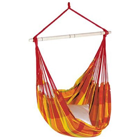 Αυθεντική βραζιλιάνικη αιώρα - κάθισμα Amazonas Brasil που σχεδιάστηκε για να σας ταξιδέψει σε παραδεισένιους, μακρινούς προορισμούς! Με τα κατάλληλα αξεσουάρ στήριξης Amazonas μπορείτε να την κρεμάσετε σε ένα δέντρο, στο κιόσκι ή στο ταβάνι σας, ενώ με μια ξύλινη/μεταλλική βάση Amazonas μπορείτε να την μεταφέρετε και να την στηρίξετε σε οποιονδήποτε εσωτερικό ή εξωτερικό χώρο επιθυμείτε! Μεγάλη όσο μια κλασική βραζιλιάνικη αιώρα, είναι χειροποίητη, με τετραπλά άκρα και παχύ ύφασμα πυκνής πλέξης 400 g/m² από ανακυκλωμένες ίνες βαμβακιού με πρόσμιξη πολυεστέρα, στοιχεία που της προσδίδουν μέγιστη στιβαρότητα, άνεση και αντοχή στη φθορά, στο ξέφτισμα και στο ξεθώριασμα! Ένα υψηλών προδιαγραφών προϊόν που σας προσκαλεί να αφεθείτε στη μεγάλη αγκαλιά του και να απολαύσετε μοναδικές στιγμές χαλάρωσης και ξεγνοιασιάς!