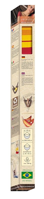 Η Amazonas Βrasil Gigante αποτελεί ίσως την μεγαλύτερη αιώρα - κάθισμα του κόσμου! Χειροποίητη, κατασκευασμένη στη Βραζιλία, τη χώρα των καλύτερων αιώρων παγκοσμίως, από 6000 νήματα ανακυκλωμένου βαμβακιού με πρόσμιξη από ποιοτικό πολυεστέρα και χοντρά σχοινιά ενωμένα και πάλι με το χέρι με το υφαντό, έχουν ως αποτέλεσμα μια αιώρα που, εκτός από τον σχεδιασμό και την αισθητική της, ξεχωρίζει για την μοναδική αντοχή της, καθώς με βάρος μόλις 3,5kg έχει τη δυνατότητα ασφαλούς ανύψωσης φορτίου ως 200kg, χωρίς να φθείρεται, να ξεφτίζει ή να ξεθωριάζει, ενώ παράλληλα διαθέτει μοναδικά απαλή και μαλακή υφή! Τοποθετείται εύκολα στον κήπο σας ή οπουδήποτε αλλού είτε με τα extra αξεσουάρ στήριξης Amazonas είτε με την κατάλληλη μεταλλική ή ξύλινη βάση Amazonas! Εμπιστευτείτε και αφεθείτε στην τεράστια αναπαυτική αγκαλιά της και αφήστε την να σας "ταξιδέψει", μόνο σας ή με την παρέα σας, σε παραδεισένιους εξωτικούς προορισμούς!