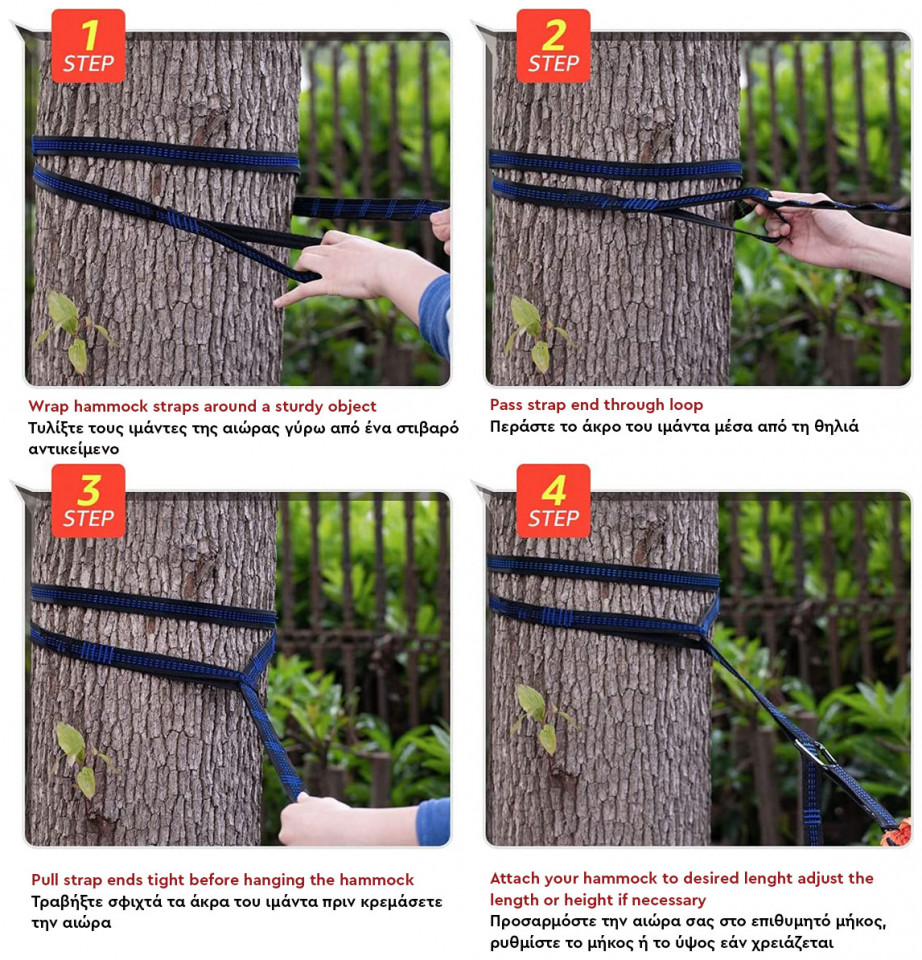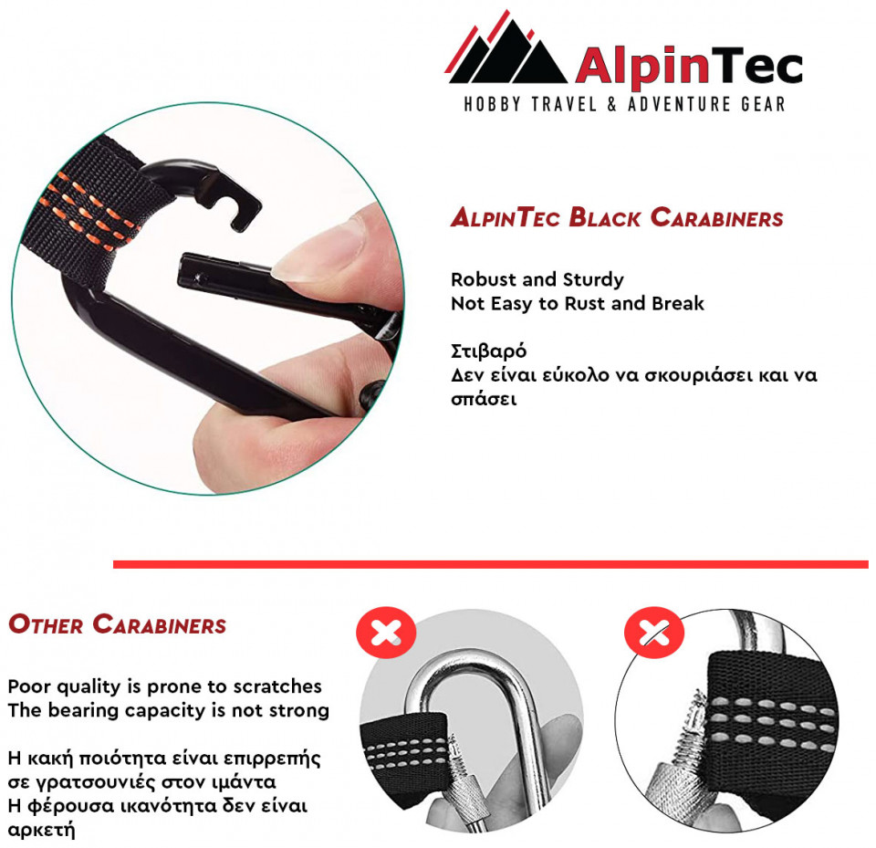 - Περιλαμβάνονται στην συσκευασία: 2 ιμάντες πρόσδεσης και 2 carabiner βαρέως τύπου