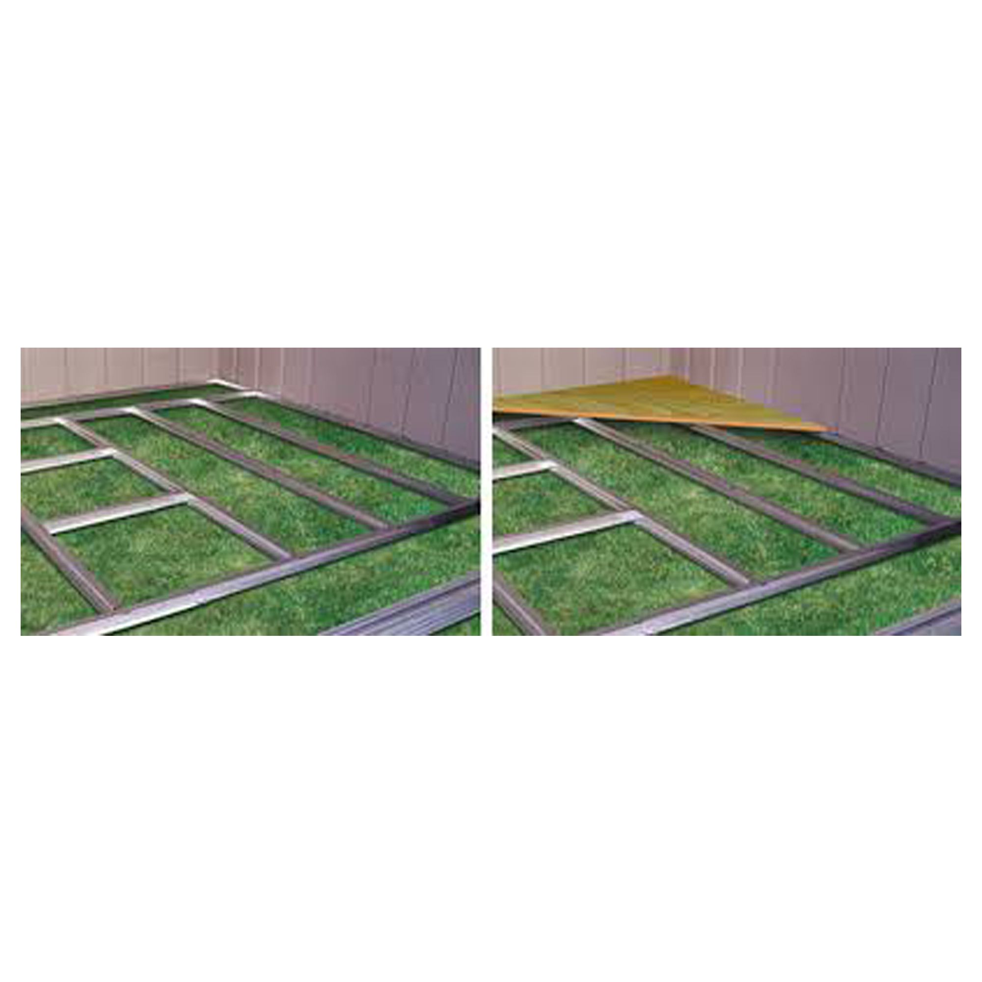 Πλαίσιο/Βάση για μεταλλικές αποθήκες Arrow, κατασκευασμένο από αλουμίνιο που του προσδίδει μεγαλύτερη ανθεκτικότητα και σταθερότητα κατά την χρήση. Για να επιτευχθεί μία επιτυχημένη συναρμολόγηση της αποθήκης, συνίσταται η τοποθέτηση του ειδικού Kit, το οποίο περιλαμβάνει περιμετρικό πλαίσιο δαπέδου από αλουμίνιο. Το Kit αυτό θα συμβάλει στην καλύτερη εξισορρόπηση και την πιο στιβαρή αγκίστρωση της αποθήκης. Αφού ολοκληρώσετε την τοποθέτηση της βάσης, μποτείτε να την επενδύσετε με κάποιο υλικό της αρεσκείας σας, όπως ξύλο, τάπητας κλπ.