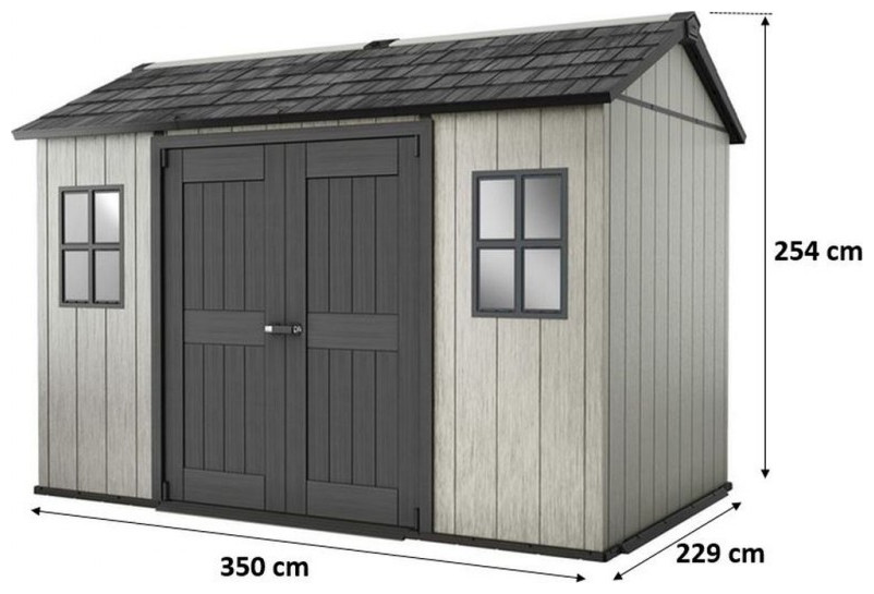 Πλαστική Αποθήκη Κήπου Oakland 11x7.5 της Keter με κομψό σχεδιασμό που συνδυάζει την αισθητική του ξύλου με την υψηλή αντοχή. Ιδανική για την αποθήκευση και προστασία του εξοπλισμού σας από τις εξωτερικές καιρικές συνθήκες και από την ακτινοβολία. Κατασκευασμένη από υλικά υψηλής ποιότητας DUOTECH σας δίνει την δυνατότητα να αποθηκεύσετε και βαρέως τύπου αντικείμενα. Δυνατότητα αλλαγής χρώματος των τοίχων μεμονωμένα για να προσαρμόσετε την αποθήκη ανάλογα με το γούστο σας και τις ανάγκες του χώρου σας. Το σύστημα κλειδώματος πόρτας(η κλειδαριά δεν περιλαμβάνεται) από ανοξείδωτο χάλυβα σας προσφέρει την μέγιστη προστασία για τον εξοπλισμό σας. Με διπλή πόρτα για εύκολη πρόσβαση ανα πάσα στιγμή και 2 σταθερά παράθυρα για φυσικό φωτισμό στο εσωτερικό της αποθήκης. Με άνετες εσωτερικές διαστάσεις ώστε να μπορεί ένας ενήλικας να σταθεί και να κινηθεί ελεύθερα στο εσωτερικό της αποθήκης.