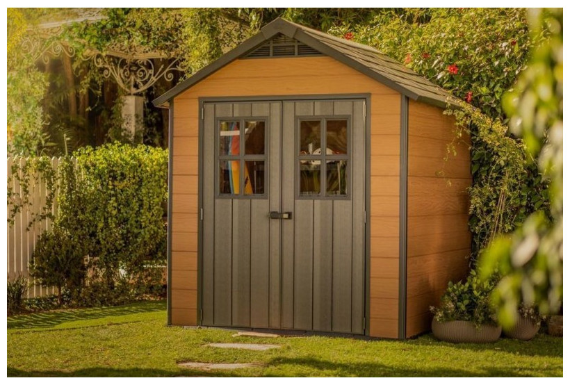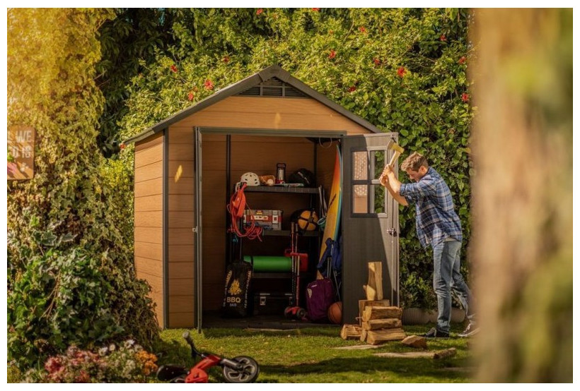 Αν ψάχνετε επίσης για ένα πρακτικό σπίτι πλαστικής συσκευής σε μια γοητευτική ρουστίκ ξύλινη εμφάνιση, αλλά εξακολουθείτε να θέλετε να χρησιμοποιήσετε τα πλεονεκτήματα του πλαστικού υψηλής ποιότητας, όπως αντοχή στις καιρικές συνθήκες, σταθερότητα και μακροζωία, το μοντέλο KETER Newton 757 είναι η καλύτερη επιλογή. Έτσι μοιάζει η ποιότητα ζωής!